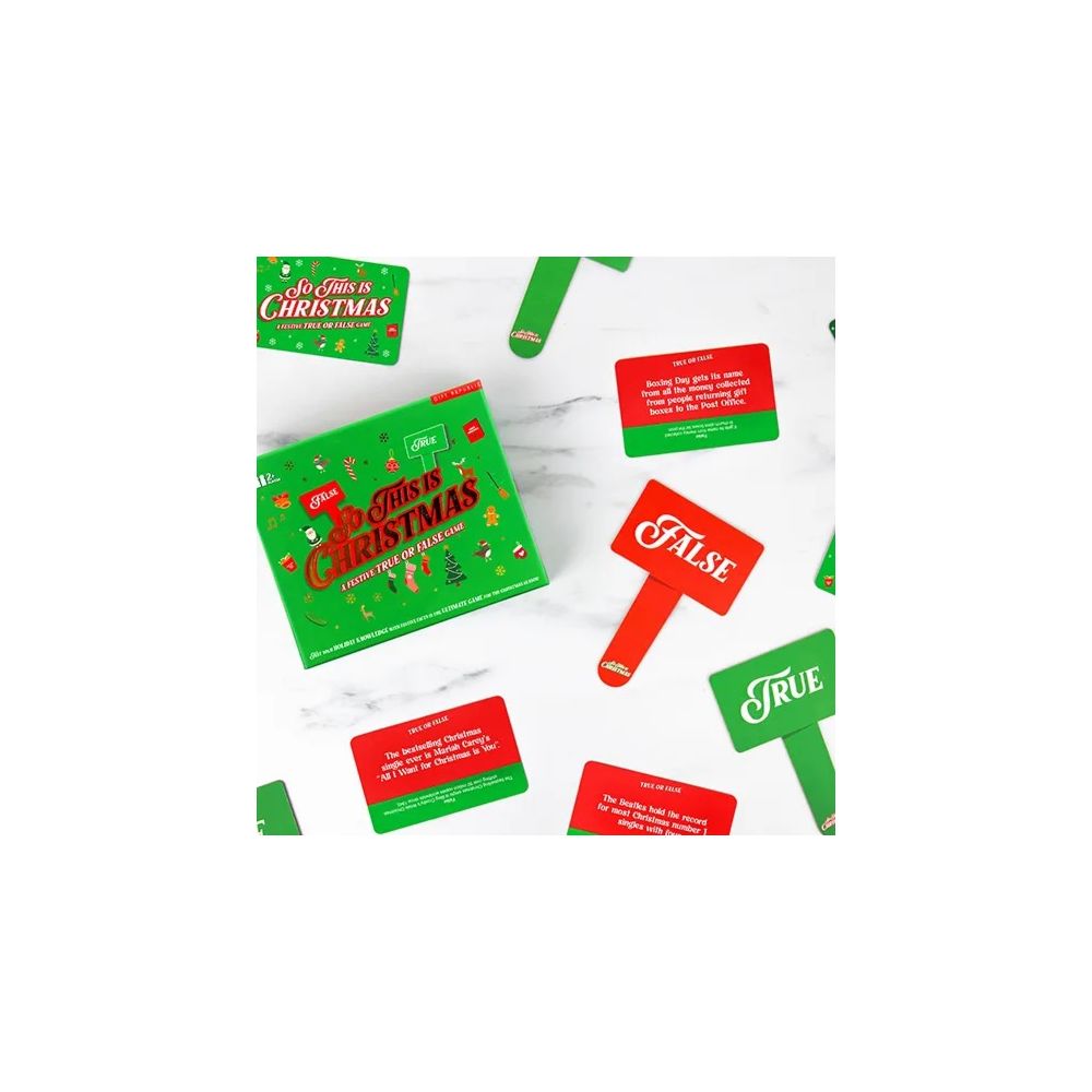 To play, simply read one of the fact cards aloud and use the paddles to answer “True” or “False”. A correct guess gives you one point - it’s that simple. With 100 festive fact cards packed with cracking Christmas trivia, this game is perfect for family game nights, office parties, a night in with your besties, or anytime you want to add a dash of festive cheer to your day.